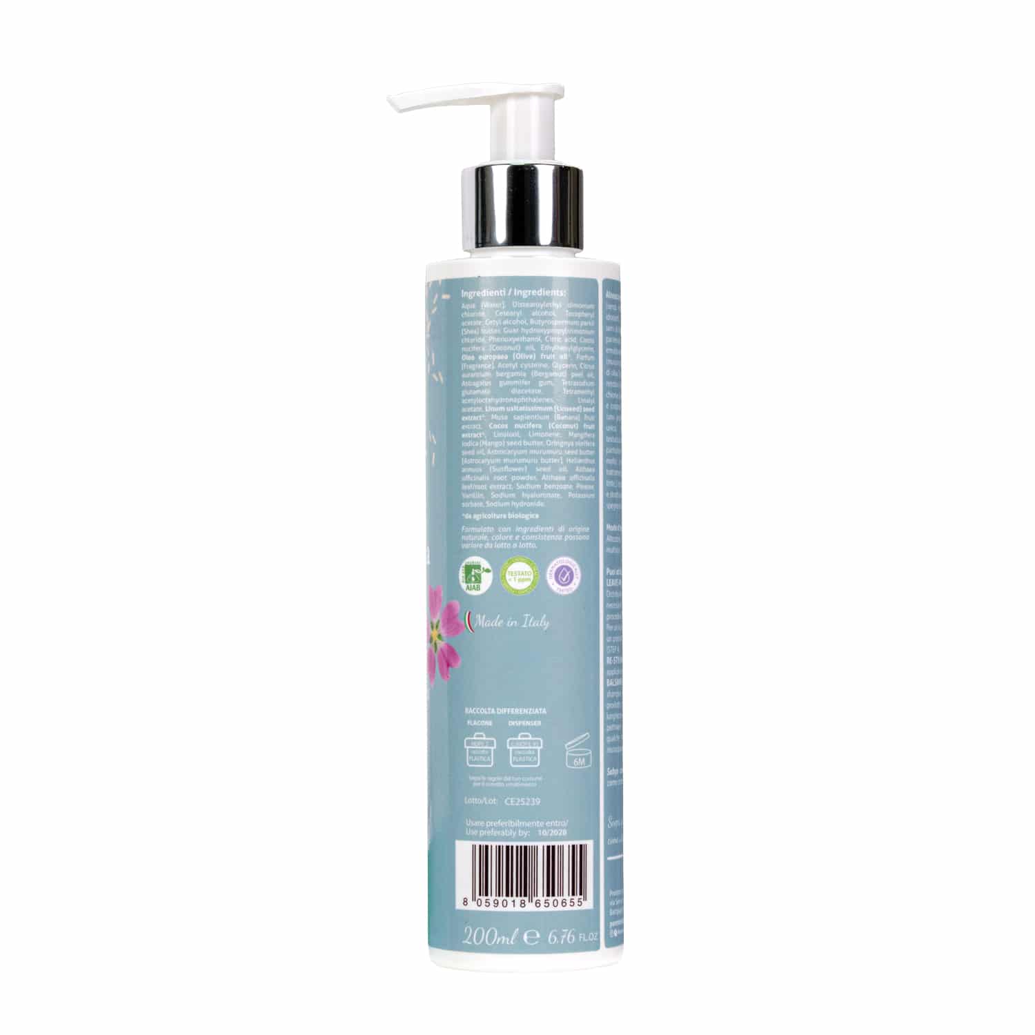 - OLEA EUROPEA FRUIT OIL : l‘ Olio di Oliva aiuta il cuoio capelluto e la fibra grazie ad alcuni specifici elementi di cui dispone in abbondanza. In particolare la vitamina A, capace di contrastare gli effetti dell’invecchiamento, ma anche la vitamine E, insostituibile per combattere gli effetti dei radicali liberi e dei danni ai tessuti cellulari. Quindi i numerosi acidi grassi di cui l’olio di oliva è composto, tra cui l’acido linoleico, indispensabile per conferire morbidezza e disciplina anche per le chiome più difficili da trattare. L’olio extravergine di oliva può essere applicato su qualsiasi tipologia di capello poiché di norma risponde alle più svariate esigenze. Può essere utile per districare le chiome più disordinate, regalando così sollievo ai capelli ricci e secchi, ma anche aggiungere morbidezza, volume, luminosità e riparare alcuni dei danni quotidiani dovuti al sole, al phon e alla spazzola.