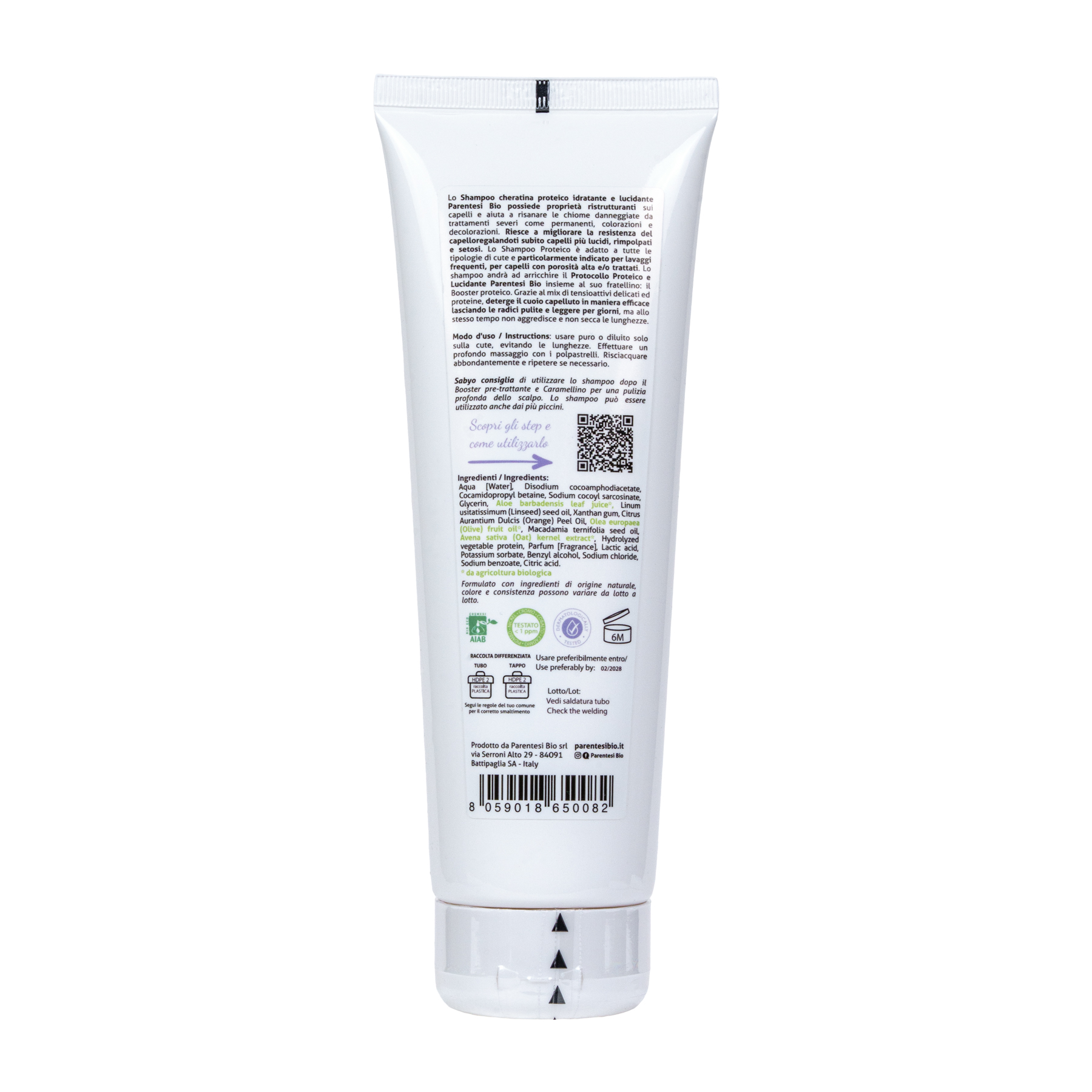 Nasce in casa Parentesi Bio lo shampoo proteico e lucidante con cheratina dalla texture in gel e dal profumo avvolgente. Uno shampoo adatto a tutte le tipologie di cute e particolarmente indicato per lavaggi frequenti, per capelli con porosità alta e/o trattati. Lo shampoo andrà ad arricchire il Protocollo Proteico e Lucidante Parentesi bio insieme al suo fratellino: il booster proteico.